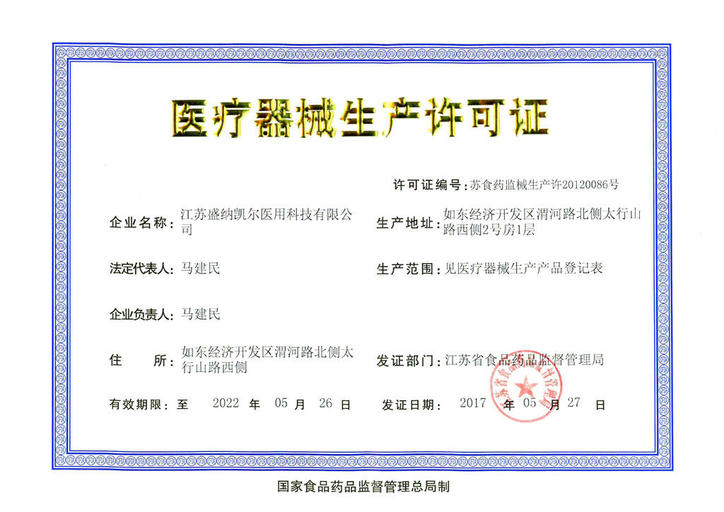江蘇盛納凱爾醫用科技有限公司成立于2011年,位于江蘇省如東經濟開發新區,是一家集研發、制造、營銷、服務于一體的高科技股份制公司。公司占地面積120畝,建筑面積20310㎡,建有十萬級凈化生產車間、產品生物/化學/物理三項指標檢驗室、原料及成品標準化倉儲系統。公司主要產品有口罩、一體式吸氧管、一次性使用無菌敷貼、體表導管固定裝置、一次性霧化吸入器等。2013年首批醫療器械產品上市,2015年獲得產品CE認證,2016年成為國家高新技術企業,江蘇省民營科技企業。獲得發明專利和實用新型專利證書共66項。